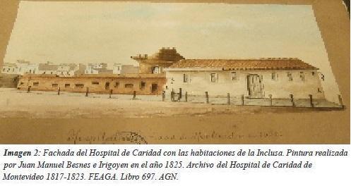 Cómo antecedente de la fundación del primer hospicio de huérfanos, el 1 de abril de 1808 se presentó en el Cabildo la moción para crear un hogar que reciba a las viudas y huérfanos que restaron como saldo de las invasiones inglesas (Costa, 1919). Se encomendó al arquitecto Tomás Toribio la creación de un plano de la primera casa cuna, quien realizó un “proyecto ambicioso y desproporcionado para la capacidad de las arcas de la ciudad”7 Por necesidades económicas, esta solicitud no pudo ser atendida hasta diez años después. Recién en 1818 a pedido del sacerdote Dámaso Antonio Larrañaga, el gobernador de Montevideo Sebastián Pintos de Araújo fundó la primera casa cuna para niños Huérfanos, llamada la Inclusa instalada a los fondos del Hospital de la Caridad 8. Durante el primer año de su fundación, en los meses de noviembre y diciembre, entraron nueva niños a la Inclusa y murieron dos; en 1819, entraron cuarenta y seis, murieron veintiocho y se entregaron diez en adopción o custodia. Hasta el 28 de marzo de 1822 habían entrado “ciento y cuarenta niños y niñas, habían fallecido sesenta y siete, se habían entregado veintitrés a sus padres y tutores”, quedando una existencia de cincuenta niños de ambos sexos. La mortalidad era, pues, excesivamente elevada, dada las condiciones calamitosas en que eran depositados los niños 9. La dirección de La Inclusa, hasta 1825, estuvo a cargo de una Junta de Gobierno compuesta por tres miembros de la Hermandad de la Caridad. Las Señoras de la Sociedad de Beneficencia eran quienes dirigían y administraban el Asilo, pero también hacían rifas y organizaban beneficios para solventar los gastos del hogar. Colocaban a los niños en casas de nodrizas hasta los 4 años de edad, bajo un salario mensual. Dichos niños eran controlados por hermanos de la Cofradía, que realizaban visitas periódicas a las casas de las nodrizas.