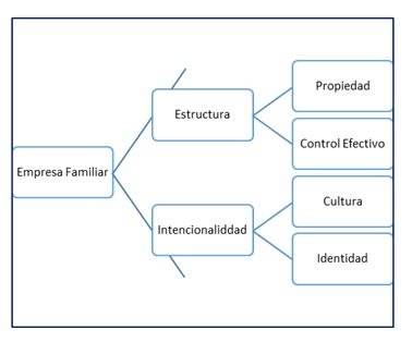 Partiendo de tres perspectivas agrupadas para generar definiciones más claras acerca de la empresa familiar, Pena López y Sánchez Santos (Peña López y Sánchez Santos, 2011), mencionan que: desde la perspectiva estructural, la empresa familiar se define por su propiedad y su gestión, siendo ambas condiciones necesarias pero no suficientes. En relación a la visión intencional o finalista, una empresa familiar se define por los valores y preferencias de los miembros de una familia. Nos ilustran lo anterior en un esquema sencillo, lo que ellos llaman condiciones definidoras de la empresa familiar (Figura 1):