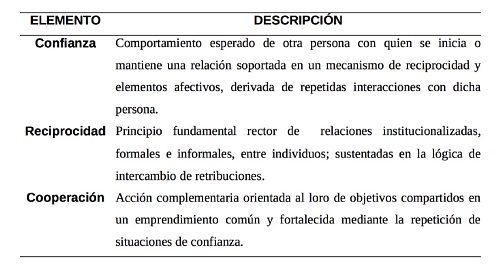 El capital social por ejemplo, es uno de los elementos fundamentales en la dinámica empresarial de características familiares, como se menciona más adelante, en una empresa. Según Jiménez y Zambrano Piña (Jiménez y Zambrano Piña, 2011) con referencia a Durston, destacan los siguientes elementos como Distintivos del Capital Social como fundamento general de las empresas (Tabla1):