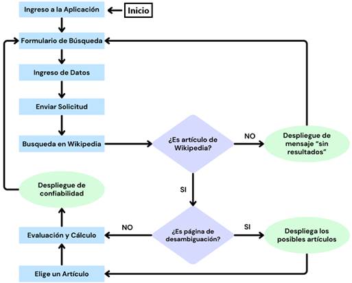 Por otra parte, está la «lógica de negocio». En desarrollo de software se denomina así al proceso de traducir reglas y procesos de una organización en código ejecutable por un sistema informático (Fowler, 2002). En este desarrollo, la lógica de negocio maneja solicitudes a la API de Wikipedia y calcula la confiabilidad de los artículos, construyendo la consulta a la API y usando el nombre del artículo o la clave de búsqueda para extraer su contenido, el título y un identificador. Esto automatiza la obtención y procesamiento de datos de Wikipedia y permite el análisis de confiabilidad de los artículos.