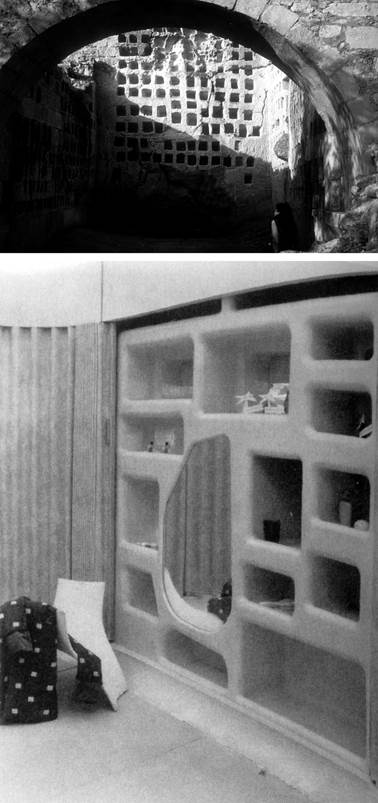 Figura 10: Fotografía tomada por Peter Smithson en las Cuevas de Les Baux, en la Provenza, en 1953, con Alison Smithson a la derecha. “nichos” en el vestidor de la Casa del Futuro (Alison y Peter Smithson, 1956).