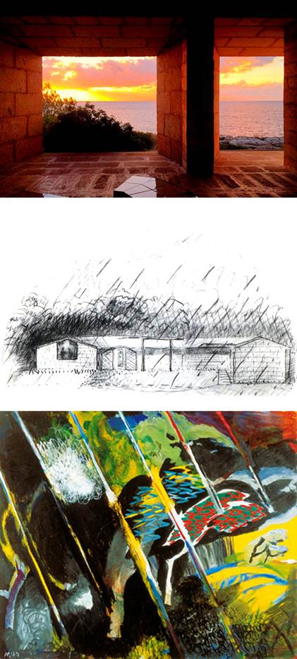 Figura 12: Jorn Utzon. Casa del Sol, Mallorca, 1972. Juan Navarro Baldeweg. Casa de la lluvia, Liérganes, Cantabria,1978-1982./ Juan Navarro Baldeweg, Viento y Lluvia II, 1986.