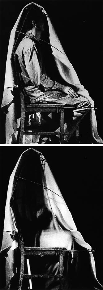 Así, el tiempo ontológico estaría relacionado con el poder evocador que algunas huellas pueden dejar en nuestra memoria. Es la fuerza narrativa de algunos objetos evocadores, la huella que deja el propio cuerpo. “El centro de una casa, como el del cuerpo, es el encargado de acumular los recuerdos que, más que datos, poseen el carácter de auténticos sentimientos. Los rituales que van teniendo lugar a lo largo del tiempo dejan huella en los muros y formas interiores y llenan las habitaciones de objetos que son los que nos permiten acceder a las experiencias pasadas” (Bloomer, Moore, 1982, p. 62). Cuando observamos la obra de Juan Muñoz, Desaparición I y Desaparición II (1985), vemos cómo el cuerpo se desvanece y el residuo es el tejido deshabitado o, mejor dicho, habitado por la persona que allí estaba sentada, por su memoria (Figura 9). También podemos observar este tipo de señales en diferentes viviendas, por ejemplo, en la Casa del Futuro diseñada por Alison y Peter Smithson en 1956, concebida prácticamente como una cueva, con los espacios a distinta altura, dimensión y forma, conectando los compartimentos alrededor de un patio central. Inspirada literalmente en las Cuevas de Les Baux en la Provenza francesa, trasladan prácticamente los nichos de aquellas al vestidor de su casa de plástico (Figura 10). La Vivienda se concibe como el rastro de un cuerpo ausente: la puerta, el espejo, la bañera… No es una cueva convencional, sino la plasmación espontánea de todo lo que en ella acontece, una casa cargada de memoria (Fernández, 2012, p. 113). Y así, “en sus mil alvéolos, el espacio conserva tiempo comprimido.” (Bachelard, 2000, p. 38).