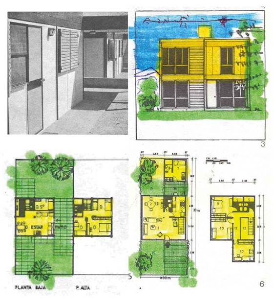 Figura 3: Elaboración propia en base a imágenes de las viviendas realizados para el Instituto de Promoción y Planificación de la Vivienda de Rio Negro, Estrella, Tempone y Trincheri (1972-1973).