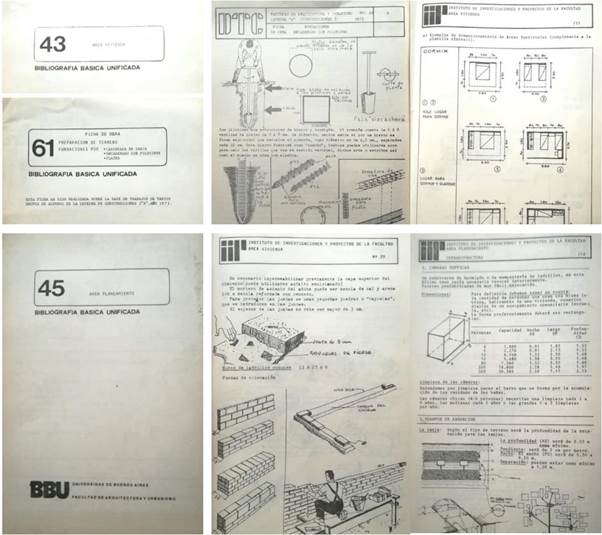A pesar de su breve duración, el IIP generó una gran cantidad de ponencias, cartillas y documentos. En varias bibliotecas de las facultades de arquitectura del país y archivos personales de arquitectos se puede encontrar la “Bibliografía Básica Unificada” (Figura 6 y Figura 7), que fueron una especie de cartillas temáticas que se abocaron a diferentes áreas de la formación, tales como vivienda, planeamiento, construcciones, etc. Algunas de ellas fueron el resultado de trabajos en las cátedras con los estudiantes, otras de proyectos de investigación y sistematización, y otras condensaron información que Tempone, Estrella y otros profesionales habían desarrollado en sus diversas experiencias.