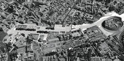 En el Concurso Foro Imperial de Roma (2016), que participamos hace unos años, lo que nosotros planteamos como idea primordial era integrar los foros con una estructura de ciudad actual5. Los Foros están en el medio de Roma, no podía resolverse el proyecto en una mera pasarela. Es el centro de Roma, un barrio activo. Hay que concebir la integración. Por el contrario, algunos proyectos consideraban dejarlo como una bella ruina. Yo, que trabajo en yacimientos arqueológicos, no creo en el concepto de la bella ruina. Es una cosa muy pictórica, muy romántica del siglo XIX. A la bella ruina hay que mantenerla y dejarla como legado para el futuro. Lo que hoy se puede fotografiar como una bella ruina, mañana puede no existir. Ni como bella ni como ruina.