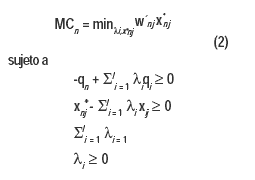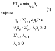La eficiencia técnica, siguiendo a Coelli et al. (2005), se determina a través del siguiente problema de minimización utilizando programación lineal: