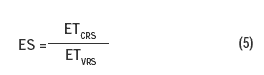 La eficiencia de escala se calcula mediante el cociente entre la eficiencia técnica obtenida bajo rendimientos constantes a escala y la ET calculada con rendimientos variables a escala (VRS). La fórmula para cada chacra es la siguiente:
