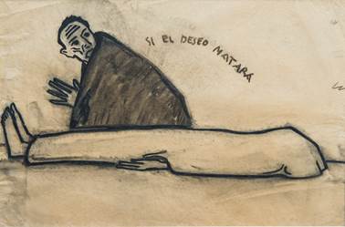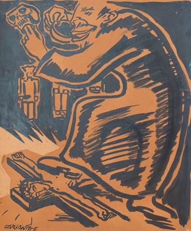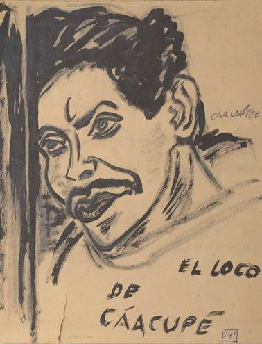 No obstante, de esta etapa de Carla Witte también existen registros de una fuerte tendencia expresionista, no solo en términos de la temática sino del tipo de elementos plásticos utilizados. Este es el caso, por ejemplo, de «El loco de Caacupé» (Imagen 4), que representa de manera descarnada la mirada penetrante, esquiva y peligrosa de un personaje de dicha localidad. Al igual que obras como «El manicomio (el loco)» de Erich Heckel, «Cabeza papúa» de Emil Nolde o «La boba» de Anita Malfatti, este trabajo se enmarca en la tendencia general de los artistas expresionistas de representar seres y conductas que viven fuera de los límites convencionales de la sociedad burguesa. En él, la importancia del trazo y el peso de la composición sobre la izquierda indican la posibilidad de una escena fuera del cuadro que -por un breve momento- atemoriza, al mismo tiempo que deja ver una actitud plástica que se volvería más fuerte en los años siguientes.
