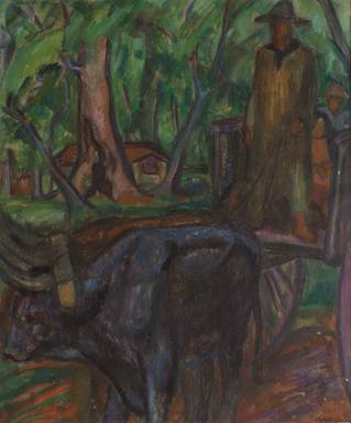 A pesar de ello, el único testimonio que existe por el momento del paso de Carla Witte por Paraguay surge de sus propias obras,36 entre las que se destaca una serie de témperas entre las que se encuentran: «Sin título (Selva)», «Sin título (Caraguatá)» y «Sin título (Carro tirado por bueyes)» (Imagen 3). Estas obras presentan la emoción y la expresión características de la pintura de tendencia postimpresionista, tanto en términos del color y la pincelada, como en la visión subjetiva del mundo.