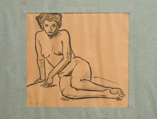 Estas características también se observan en los dibujos que realiza la artista. En particular, el gran número de desnudos que componen la colección del Museo Agustín Araújo se caracteriza por la utilización de líneas fuertes, que definen con decisión los cuerpos de las modelos, en su gran mayoría mujeres y en poses no ensayadas (Imagen 9). Si bien los expresionistas se opusieron en general a la desnudez idealizada de las academias tradicionales, en esta serie de dibujos de Carla Witte se hace palpable una percepción de la realidad muy sensualizada, que parece oscilar entre posiciones claramente definidas (e incluso de cierta violencia latente) y otras de aparente fragilidad.