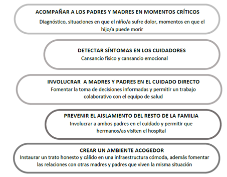 Figura 3: Recomendaciones para equipos de salud que trabajan con madres y padres de NNA con cáncer durante la hospitalización.