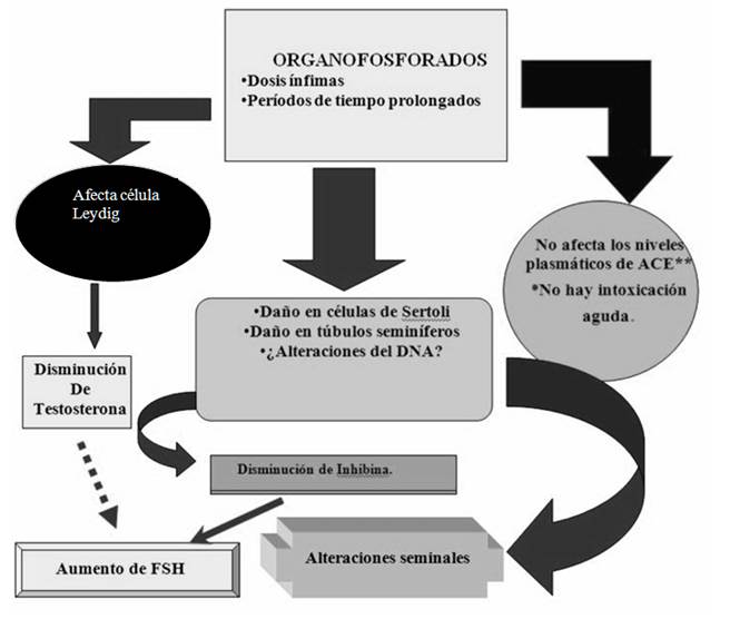 Figura 2 Acción de los organofosforados en el sistema reproductor masculino ACE: acetilcolinesterasa