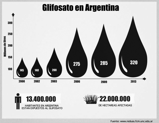 El estudio en ratas realizado por Gilles Seralini y otros, demostró que el Glifosato (N-fosfonometil glicina) altera la función testicular después de 8 días de exposición a una concentración del 0,5% similar a los niveles encontrados en el agua después de la pulverización agrícola. La exposición repetida a este herbicida a dosis inferiores puede dañar la reproducción de mamíferos a largo plazo 28,29. El Glifosato es el herbicida más utilizado mundialmente y en Argentina el crecimiento de la aplicación del compuesto es alarmante (Figura 3).