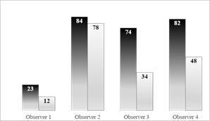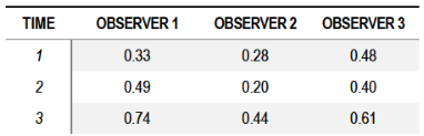 Azambuja and others22 discuss correlation as an indicator parameter for the validation of this software. Figure 4 shows the percentages of coincidence obtained, and the correlation coefficients between the observations of BCS by visual appreciation and by scoring in the software, from four different observers.