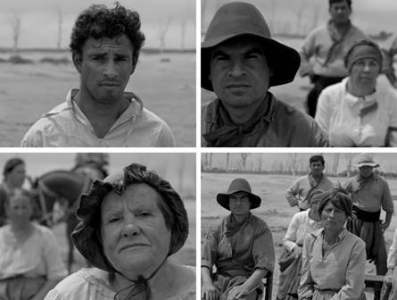 Todo parece remitir al conflicto entre unitarios y federales durante la gobernación de Juan Manuel de Rosas, y es por esa ubicación más o menos transparente que gran parte de los críticos marcaron el contraste con la escena final, donde la temporalidad se vuelve difusa, casi brumosa, como una neblina nocturna. Tras la reunión que logra montar el Señor -un caudillo que lleva las riendas del movimiento-, sus asistentes comienzan a dirigirse explícitamente a la cámara. No solo establecen contacto visual, sino que le hablan. Declaran ante ella. Narran el encuentro como si respondieran a la pregunta: “¿qué sucedió en la reunión?”. El montaje entrecortado, que va intercalando el plano individual de cada campesino, teje un discurso complementario entre una voz y otra -virtualmente, una sola voz-. Hay una narración lógica, ordenada, donde la multiplicidad de voces y rostros se funden en un único sentido. “Ayer tuvimos en una reunión el discurso de un señor de la política”, dice un hombre. Y la mujer del plano siguiente agrega: “que quería cambiar el país”. Esta escena se comporta a la manera de un documental testimonial: cada personaje cumple el rol de entrevistado y la cámara asume el de testigo. Pero el quiebre de la escena termina de cimentarse más allá de los rostros, en la profundidad de campo. Detrás de las personas, la imagen esquelética de los árboles es sacudida con la aparición de una camioneta y una moto que atraviesan el desierto. El canto de los pájaros es devorado por los bocinazos ensordecedores. Se trata de una vuelta de tuerca a través de la cual Naishtat termina de mostrar todas sus cartas: la opacidad del artificio, la temporalidad enrarecida, la intención de fijar un sentido estático en torno a la figura del pueblo y sus dirigentes políticos.