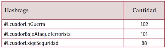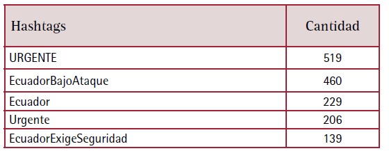 Tabla 2: Hashtags en el marco de la crisis de seguridad