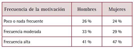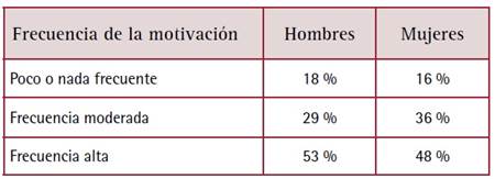 No obstante, en la motivación “para mantenerse actualizado” los hombres toman la delantera con un 53 % de frecuencia alta, en tanto que las mujeres lo hacen en un 48 % de frecuencia alta en este ítem (Tabla 7). Esto significa que hombres reportarían mayor tendencia a la vigilancia del entorno como motivación para el consumo informativo.