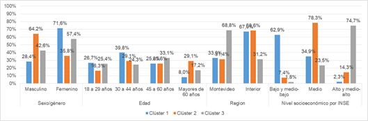 Gráfico 2: Características sociodemográficas según conglomerados. En porcentaje de personas