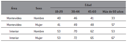• -La región de pertenencia de la persona (Montevideo o interior del país).
