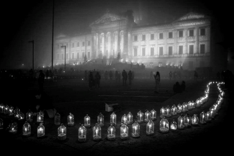 Coincidiendo con las Marchas de Memoria Histórica, el 26 de junio (Anexo 5), en la Vigilia por la Democracia se usaron todos los residuos plásticos de garrafas y botellas generados a lo largo de los meses. Se trató de una jornada que culminó iluminando a la luz de las velas -protegidas por estas garrafas- al Palacio Legislativo para dar comienzo al 50.º aniversario del golpe de Estado de la última dictadura cívico-militar uruguaya, que se desarrolló entre 1973 y 1985 y dejó cientos de asesinatos y desapariciones y más de 5000 detenciones. Este ejemplo concreto se enmarcó en el conjunto de acciones que se llevaron a cabo como respuesta comunitaria ante un aumento de residuos plásticos. De hecho, entre el 20 de mayo y el 4 de julio de 2023, en Montevideo se recolectaron 24.310 kilos de residuos reciclables, triplicándose los plásticos recibidos en puntos de acopio como el Ecocentro Buceo.