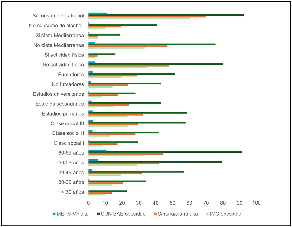 Palabras clave: Obesidad; Consumo de alcohol; Tabaco; Sedentarismo; Dieta mediterránea; Estatus socioeconómico