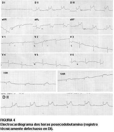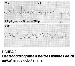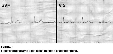 Electrocardiograma a los tres minutos de 20 µg/kg/min de dobutamina.