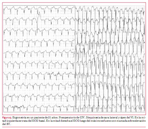 Por esta razón se aconseja controlar periódicamente con Holter y PEG para evaluar capacidad funcional, respuesta cronotrópica y descartar arritmias –IART– (2). El ECG en los pacientes operados con la técnica de switch arterial (desde 1990 en adelante) suele ser normal si no hay defectos residuales significativos. De todas formas, deben realizarse PEG en forma periódica, cada tres años, a efectos de descartar cambios isquémicos relacionados con el reimplante de las arterias coronarias o estenosis a nivel de los ostium de las mismas(2). También puede observarse HVI o HVD por estenosis supravalvular aórtica o pulmonar, respectivamente, referida a los sitios de sutura quirúrgica en la translocación de las arterias aorta y pulmonar.