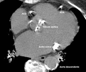 Errores potenciales en el cálculo pueden sobreestimar o subestimar el valor. Por ejemplo, un score erróneamente elevado puede ser debido a la inclusión de estructuras calcificadas en el cálculo, como la pared aórtica, la válvula aórtica y el anillo mitral (figura 1).
