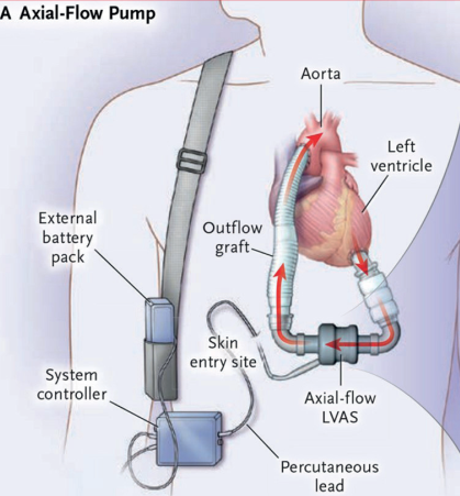 Figura 2: Dispositivo de asistencia ventricular izquierda de tipo Heartmate III. Tomado de Deshpande S. Efficacy and Safety of Left Ventricular Assist Devices with Centrifugal Flow Pumps. N Engl J Med, 2017.