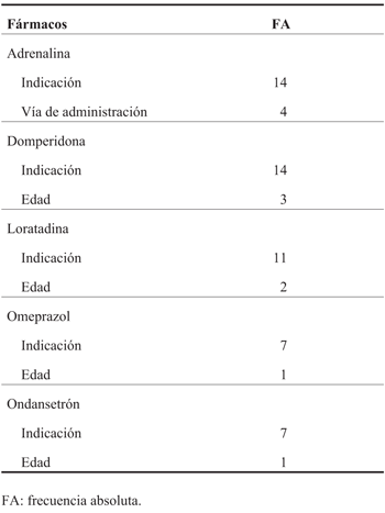 Identificaron uso off label de adrenalina 18, domperidona 17, loratadina 13, omeprazol 8 y ondansetrón 8. En la (Tabla 4) se resumen las formas de uso off label identificadas para cada uno de los fármacos incluidos en la encuesta.