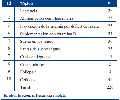 Se seleccionaron al azar diez tópicos (por el tiempo destinado al trabajo de campo en el proceso investigativo). En la (Tabla 1) se muestran los seleccionados para validar en esta investigación.