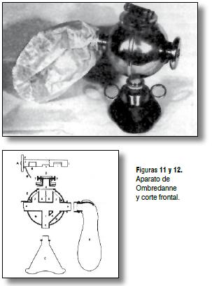 Las figuras 11 y 12 muestran el aparato de Ombredanne que todos conocimos, al tener que utilizarlo en nuestras primeras guardias hospitalarias, como practicantes externos de los hospitales. El externado, así como el internado lo heredamos de la medicina francesa, que rigió hasta que fue sustituido por otras modalidades de práctica hospitalarias de origen anglo-sajón, como las residencias médicas.