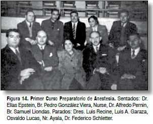 Este curso fue supervisado por el Prof. José Piquinela, y estuvo a cargo del Dr. Alfredo Pernin, y de los instructores: Dr. Juan Scasso y bachilleres Antonio Cañellas y Fernández Oria. La práctica se realizó distribuyéndose el encargado y los instructores en las clínicas quirúrgicas de los hospitales Maciel, Pasteur, Pereira Rossell y Saint Bois. En marzo del 1954, ya creada la Escuela de Posgrado, se realiza el segundo curso de la especialidad (figura 14).