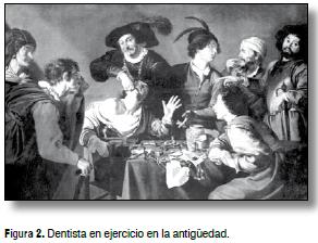 Los primeros que se interesaron seriamente en el uso de estos agentes fueron los dentistas, que pensaron en emplearlos para extracciones dentarias complejas y, por lo tanto, más dolorosas. Hasta ese entonces, esas intervenciones se realizaban con el paciente despierto, al que había que sujetar para que aguantara el dolor, como se ve en la figura 2, que adorna algunos consultorios odontológicos, y que pretende mostrar cómo trabajaban los “sacamuelas” de la época.