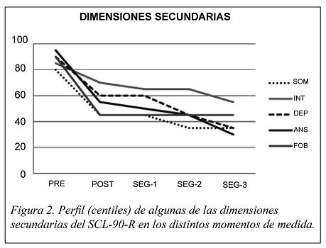 Sin embargo, la sintomatología relacionada con la depresión, las relaciones interpersonales, la hostilidad o el paranoidismo disminuyeron de forma más gradual y progresiva (Figura 2).