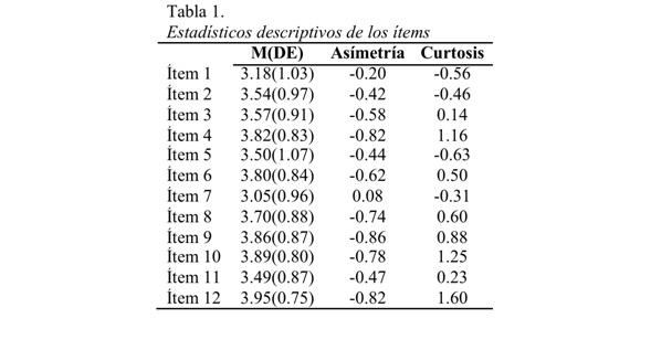 Tabla 1: Estadísticos descriptivos de los ítems.