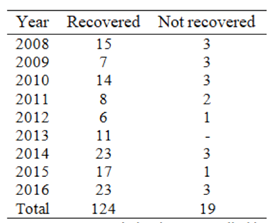 Initially, we identified 143 theses defended between 2008 and 2016 that included the two research areas of the Program: Educational processes in the social and political context and Evaluation of human development and learning: educational implications (Table 1).
