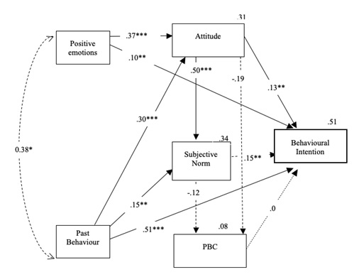 Table 2: Hierarchical regression with variables of the TPB, Positive and negative emotions, Moral Norm and Past Behaviour