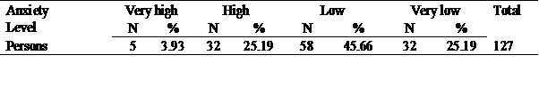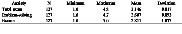 The Table 4 shows that both genders experience the highest level of anxiety when sitting an exam.