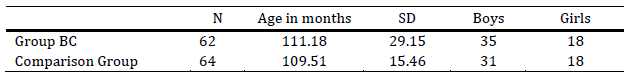 Data was analyzed by using the SPSS statistical package, thus fixing the level of statistical significance in .05. Preliminary descriptive tests, which are detailed in Table 2, were conducted. Then, the study of the differences between the group of children with poor comprehension performance (Group BC) and the comparison group with better comprehension performance, both in comprehension measures and in cognitive measures, was undertaken. Finally, the potential correlations between the types of variables above were analyzed.