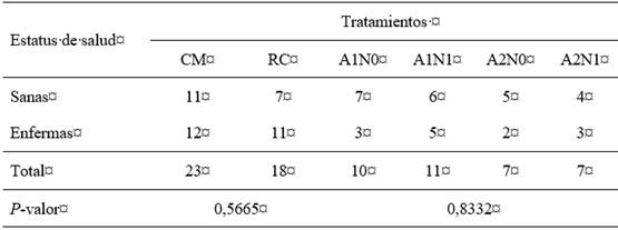Tabla 3: Análisis de asociación entre los tratamientos con la presentación de enfermedad en terneras