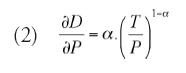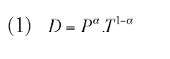 Esta idea la podemos formalizar del siguiente modo. Supongamos que disponemos de una medida del nivel de desarrollo (D), que depende positivamente del nivel de producto per cápita de una economía (P) y del nivel de igualdad en la distribución de recursos (T). Supongamos además que la relación funcional es de tipo Cobb-Douglas, tal como lo muestra la expresión (1), donde 0 < α < 1.