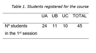 For recruiting individual students, I sent an email to the secretaries of the Departments of Education and they forwarded the invitation to the potential participants. As a response to that invitation, a group of students from each university registered for the course (see Table 1). However, only a group of them actually participated fully (see Table 2), which means that they attended at least 80% of the CAME sessions.