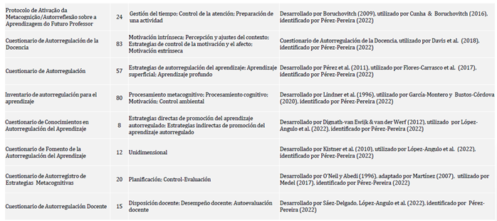 Tabla 1: Sinopsis de instrumentos de evaluación de autorregulación en docentes