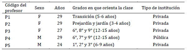 Entre los aspectos éticos, la investigación contó con el consentimiento de los participantes, la confidencialidad y el anonimato. En la presentación de los resultados, sus nombres se cambian por un código (letra P y un número del 1 al 5) y no se nombran las instituciones educativas o el estudiantado. Según la Resolución 008430, del Ministerio de Salud de Colombia (1993), se considera una investigación sin riesgo.
