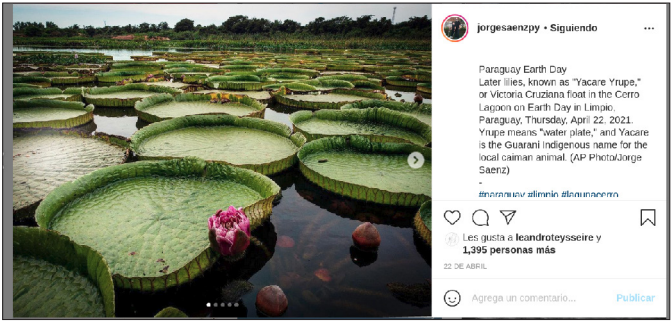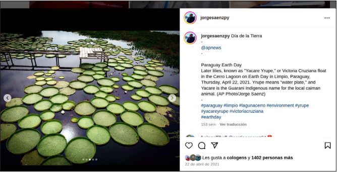 El 6 de agosto el diario paraguayo La Nación se hizo eco de la noticia. El 16 de agosto de 2020 la noticia daría un salto de visibilidad cuando Leonardo Di Caprio, que se define en sus redes sociales como actor y ecologista en igualdad de condiciones, reprodujo la foto en sus redes sociales2 (Imagen 4). Di Caprio contaba en ese momento con 48 millones de seguidores en su cuenta de Instagram y obtuvo 564.163 likes al publicar la fotografía de Sáenz.