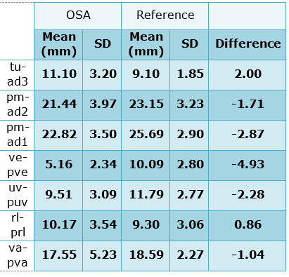 Figure 5 shows the points and lines most commonly used to assess upper airway obstruction, as well as the reference airway diameters and the diameters for individuals with OSAS in Table 1 18.