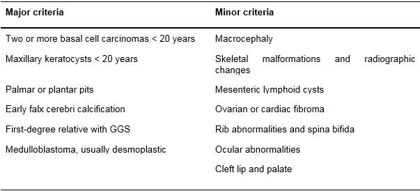 11. Bree AF, Shah MR, BCNS Colloquium Group. Consensus statement from the first international colloquium on basal cell nevus syndrome (BCNS). Am J Med Genet A 2011;155A:2091-7. [ Links ]