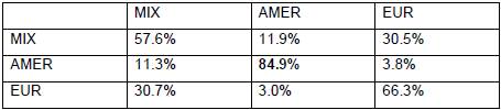 Tabla 3: Resultados del Análisis Lineal Discriminante (DFA) con prueba de validación cruzada (jackknife), basada en los componentes de la forma del arco dentario de las muestras de población mixta chilena (MIX), amerindia (AMER) y eurodescendiente (EUR).